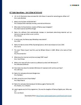 Read Online Ict Quiz Questions And Answers Epub online is a convenient and frugal way to read Ict Quiz Questions And Answers you love right from the comfort of your own home. Yes, there sites where you can get Epub "for free" but the ones listed below are clean from viruses and completely legal to use.