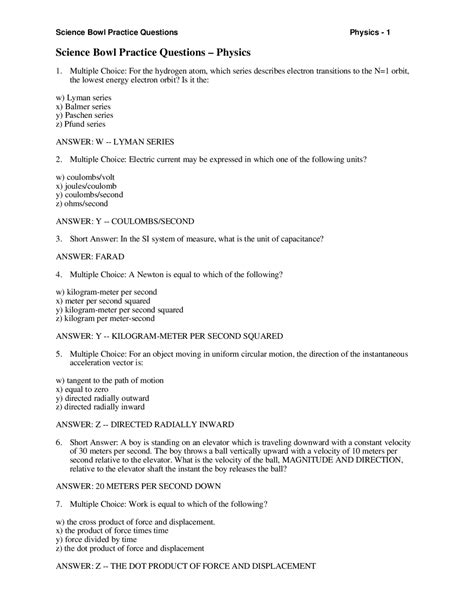 Read Online Science Bowl Questions Answers For Physics Epub
